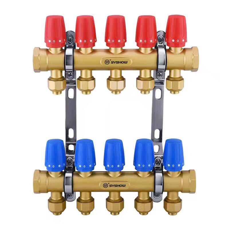 分水器主要负责地板加热系统中暖环路中河水的打开和关闭。当燃气锅炉中的水通过主管路注入歧管时,杂质通过过滤器分开,然后水均匀地分派到环路中。开展热交换后,它又返回集水管中返回负责人,然后从回水入口注入加热系统。
